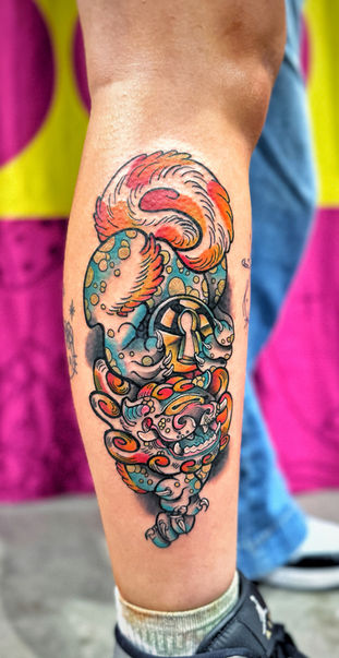 I tattoo out of Krybaby’s tattoo studio when I’m there. I also hold a license in Georgia and tattoo out of white bluff tattoo in Savannah Georgia. I travel back and forth throughout the month so you can catch me in both states for a tattoo. I’m always traveling, creating multiple side quests, and living my best life.