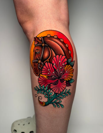 I’ve had the honor of working guest spots in San Francisco and Spain, as well as participating in conventions in Italy, Barcelona, Ohio, Miami, and my hometown. My style lies somewhere between neo-traditional and traditional: bold and fine lines combined with high contrast to make colors truly pop.